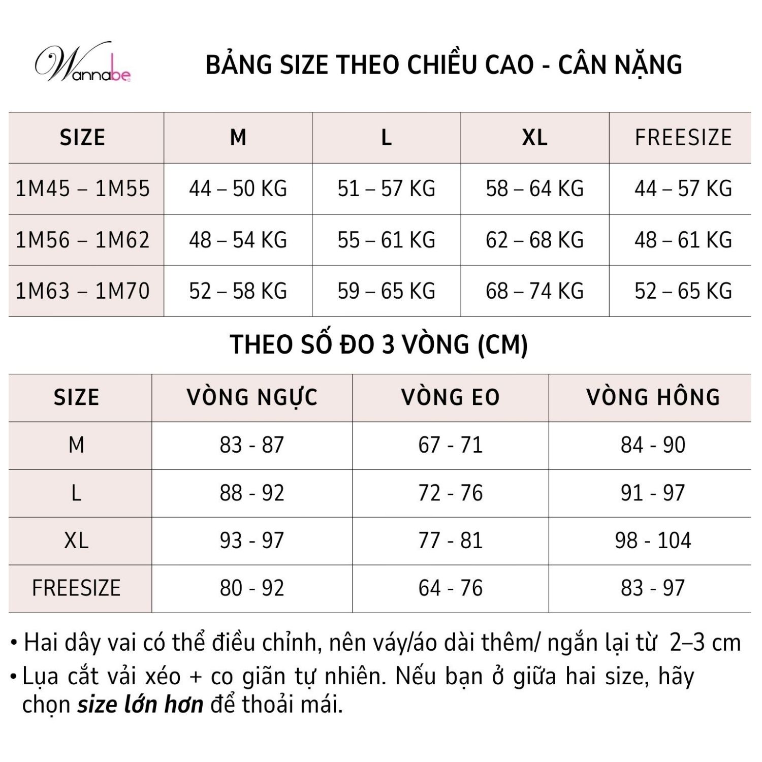 Tham khảo chọn đúng size để giúp cơ thể bạn đẹp hơn nhé!