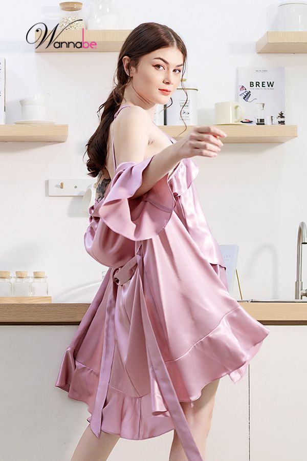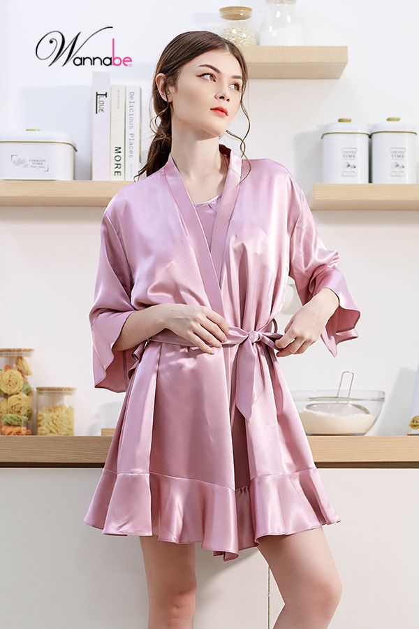 Áo choàng ngủ phi lụa cao cấp Wannabe KIS22 với kiểu dáng áo choàng kimono hiện đại nữ tính quý phái nhẹ nhàng.