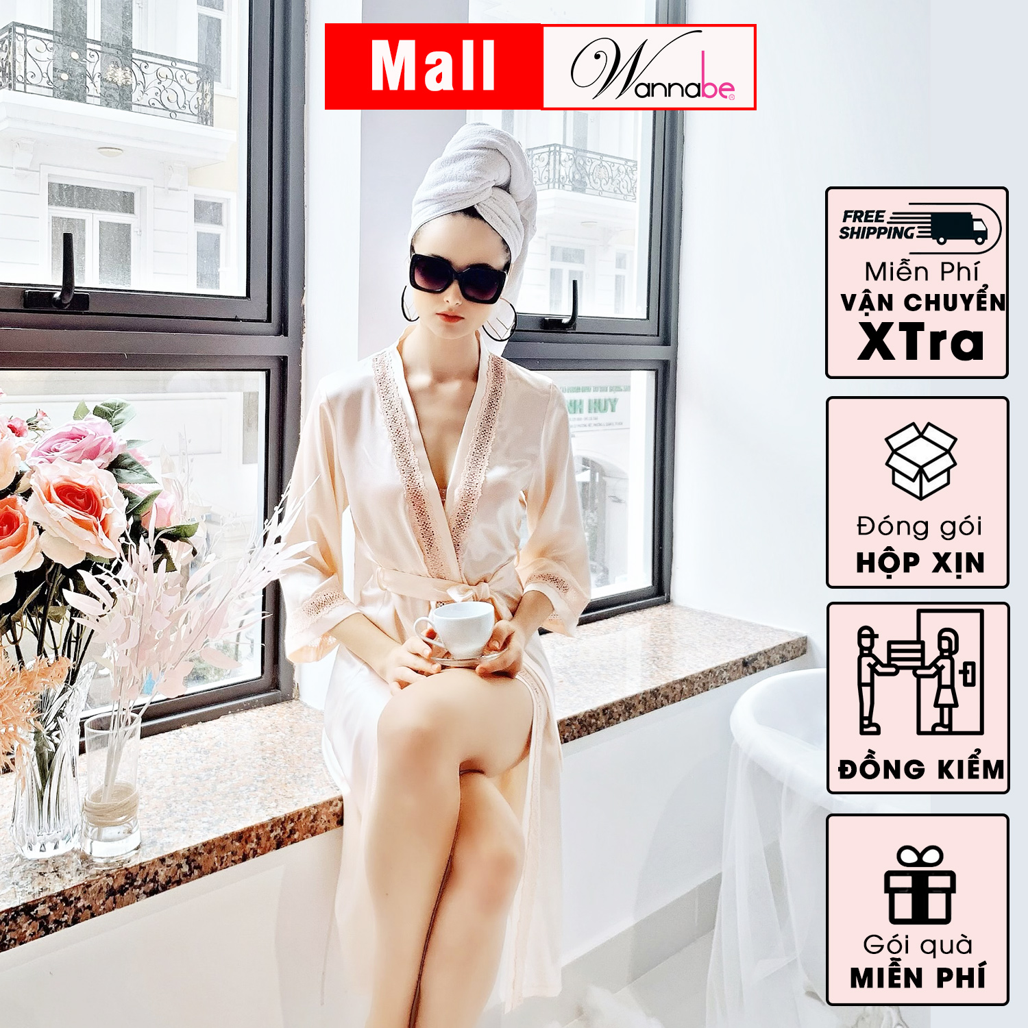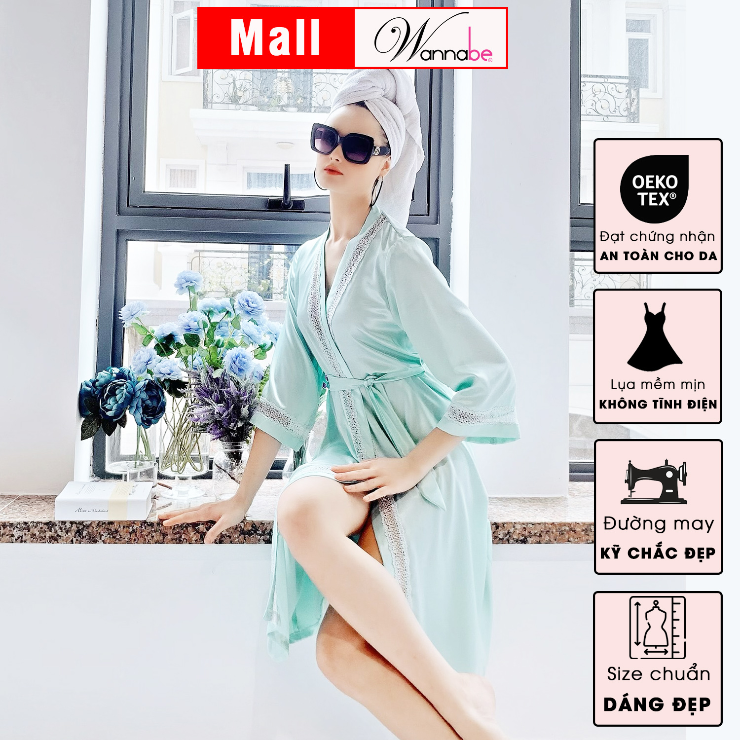 Loại: áo choàng ngủ, áo khoác kimono