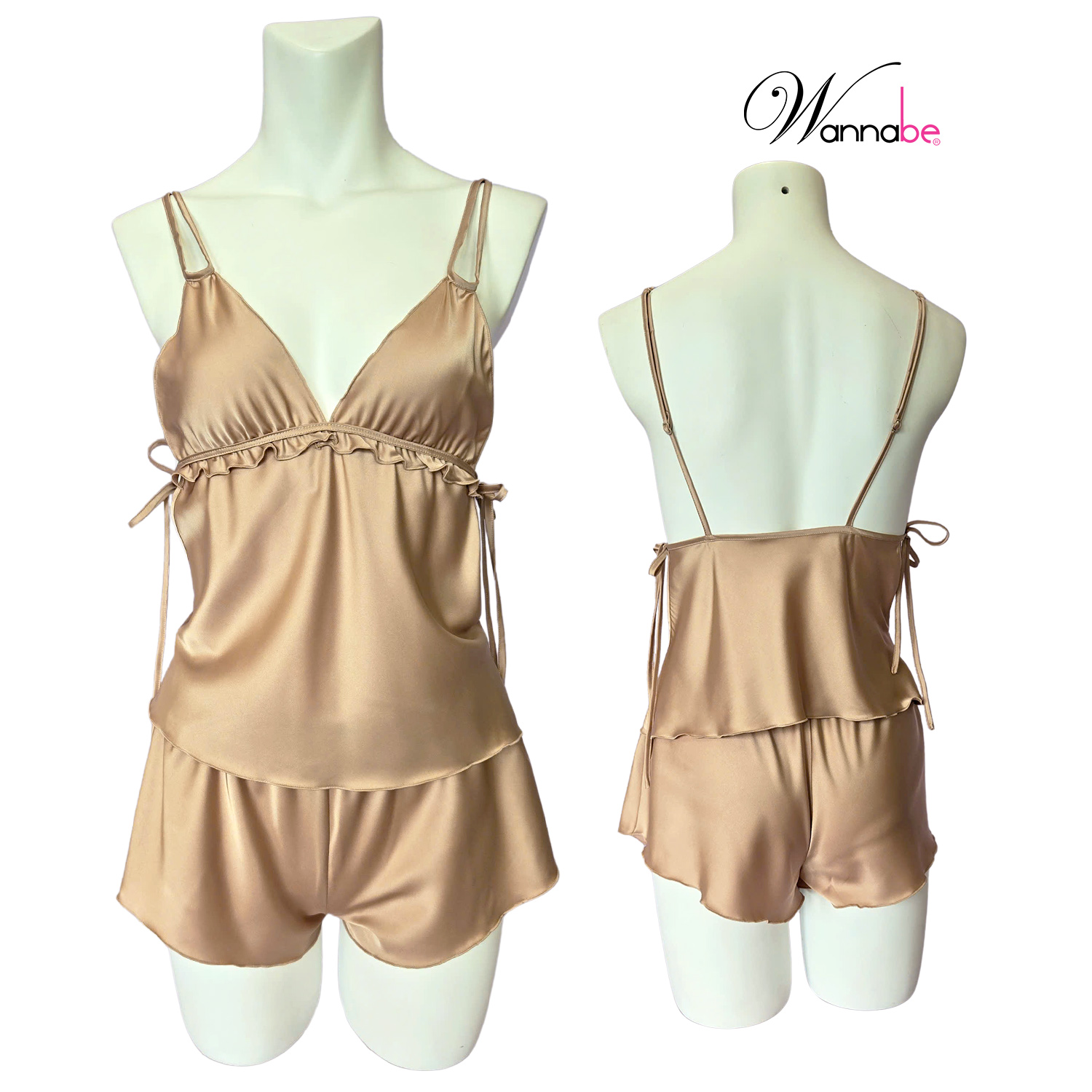 Độ bộ lụa mềm mại thiết kế nhún eo tinh tế WANNABE bộ đùi nữ dành cho Quý Cô thích nhẹ nhàng BSL04