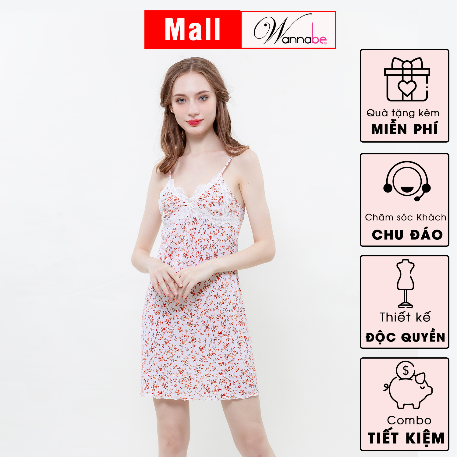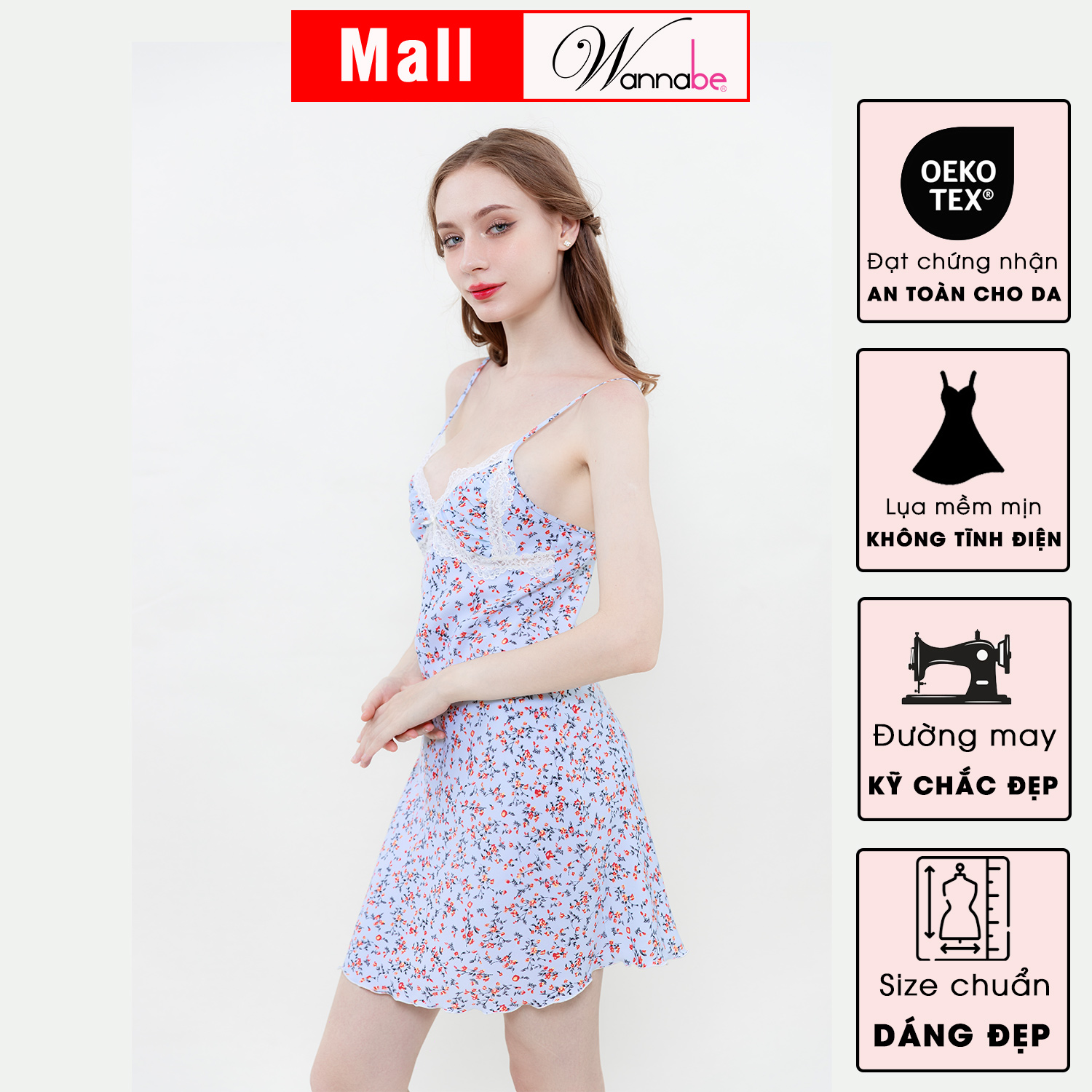 Đầm ngủ giống hình 98%. Tất cả hình ảnh đều do WANNABE chụp sản phẩm thật.