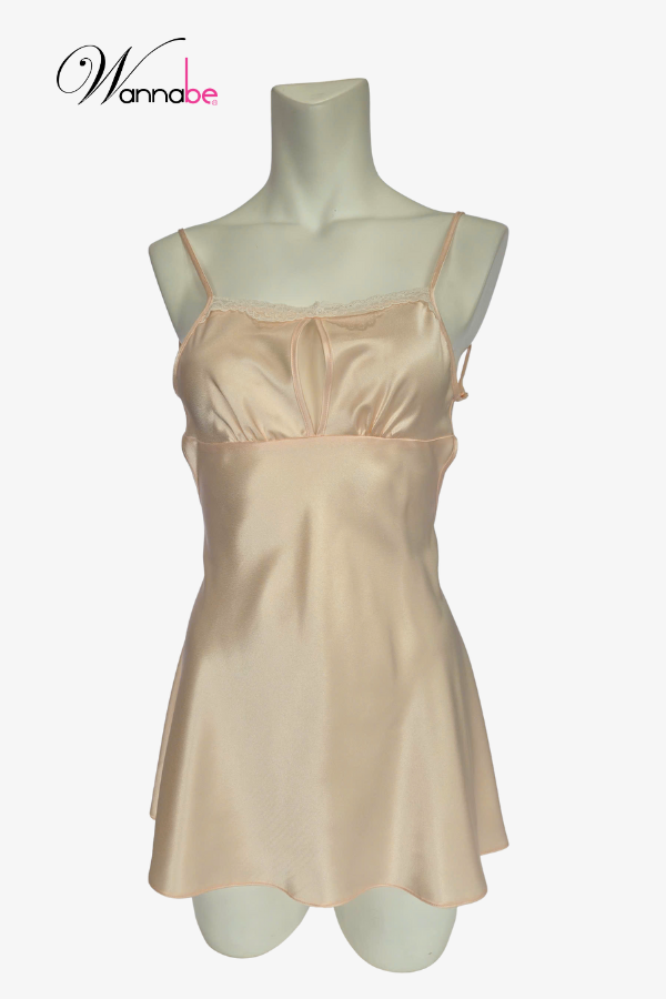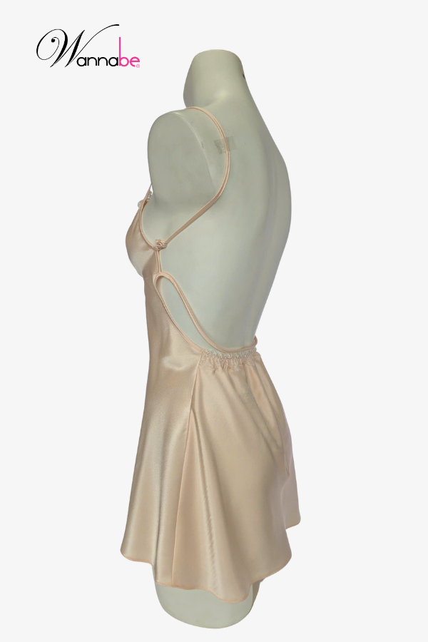 Đầm ngủ lụa WANNABE DNS51 váy ngủ xẻ ngực cut out lưng thả dây ngang tô điểm lưng trần nữ tính quyến rũ của bạn gái
