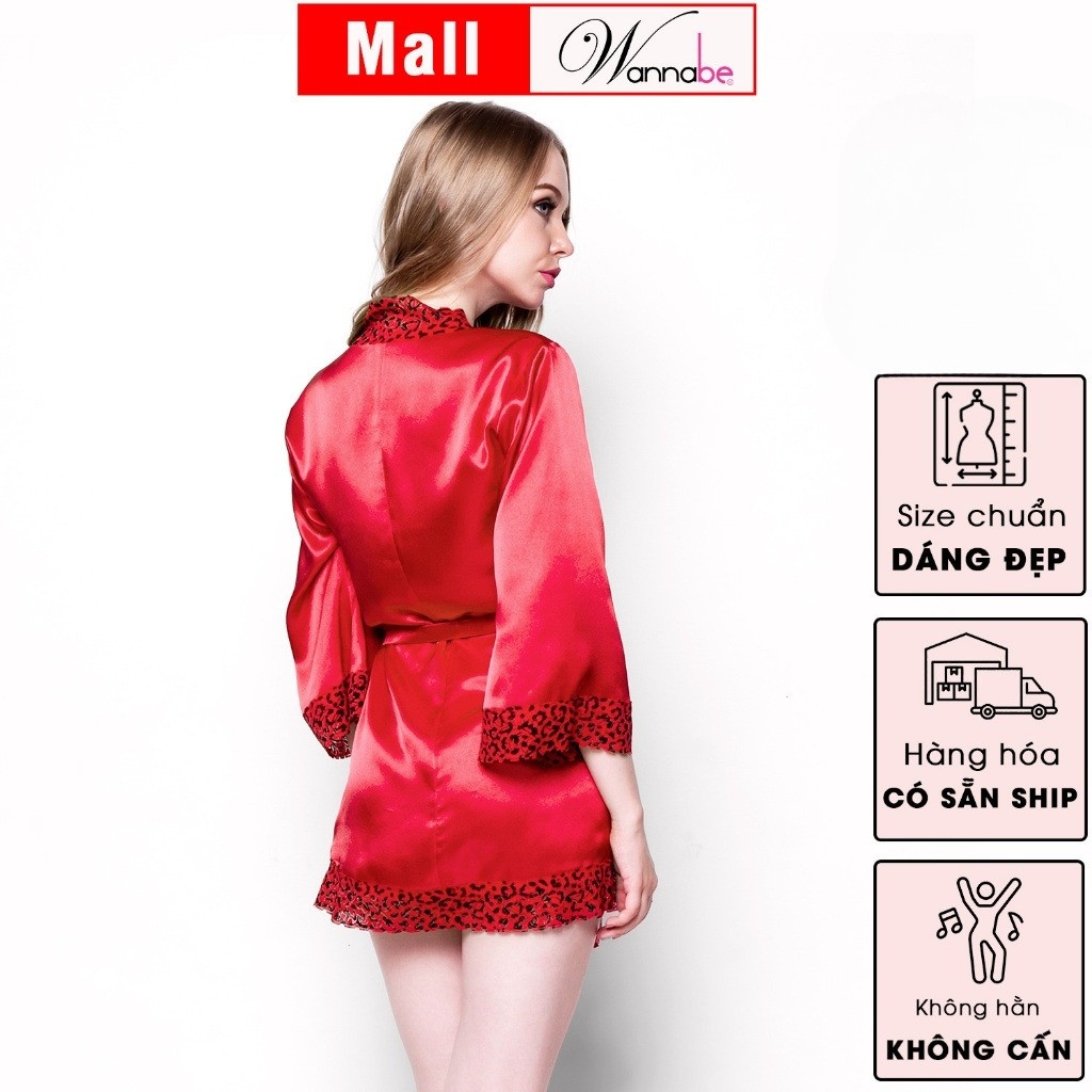 Áo choàng ngủ WANNABE KI005 áo khoác ngủ lụa phối ren tay nẹp cổ lai mang lại vẻ trẻ trung hiện đại cho bạn gái