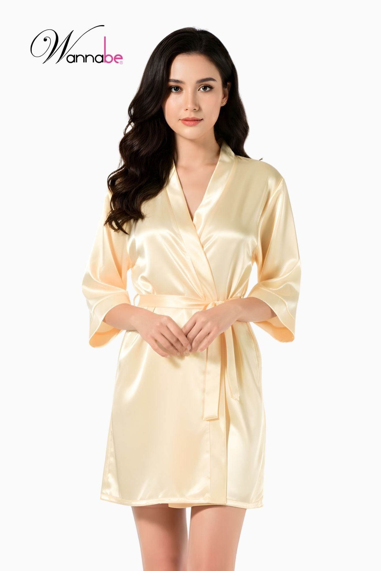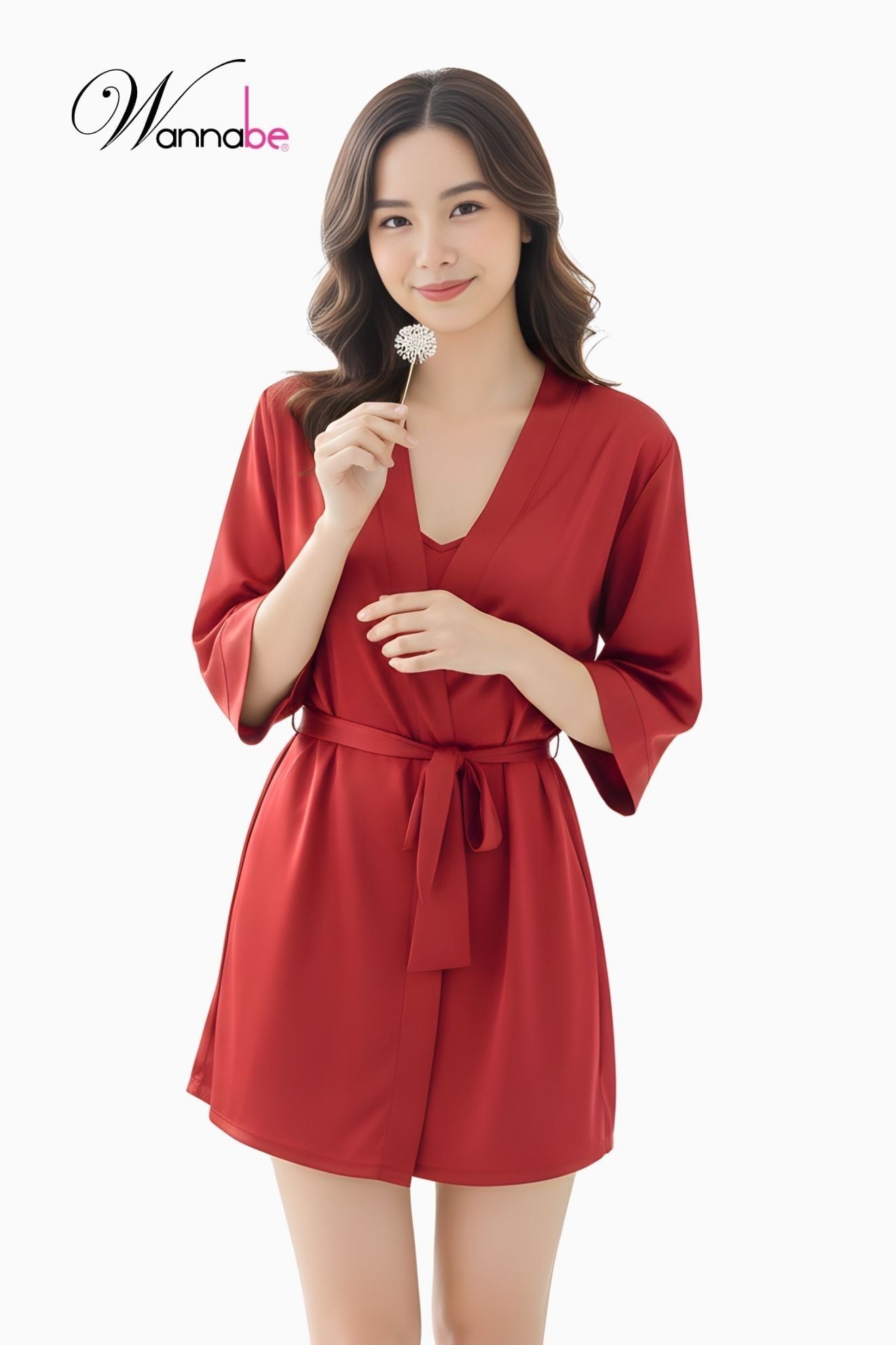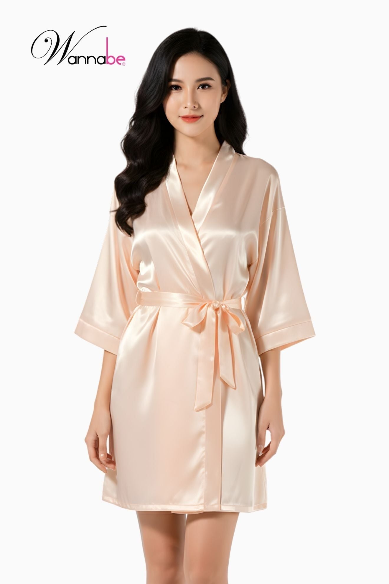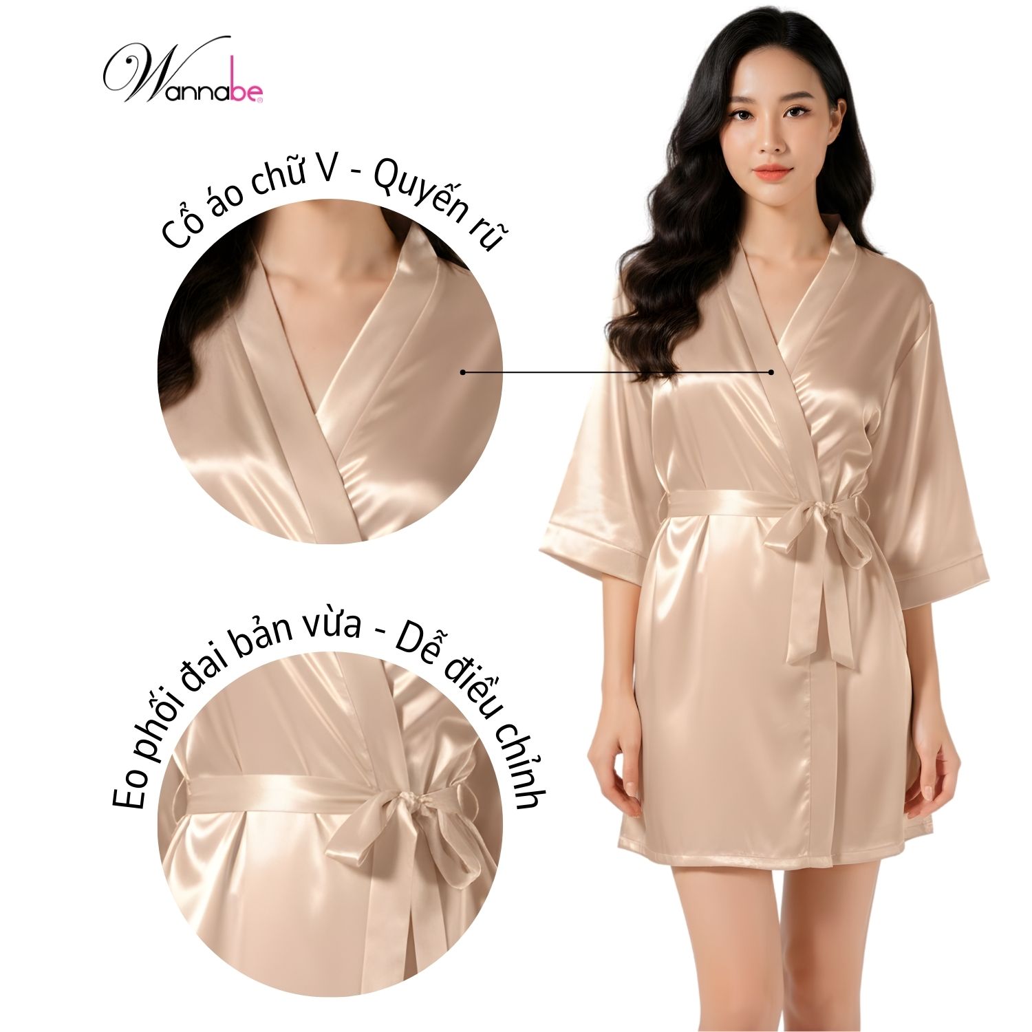 Áo khoác ngủ WANNABE KI010 chất liệu satin; được thiết kế với kiểu dáng đơn giản hiện đại mang đến cảm giác nhẹ nhàng, thoải mái khi mặc