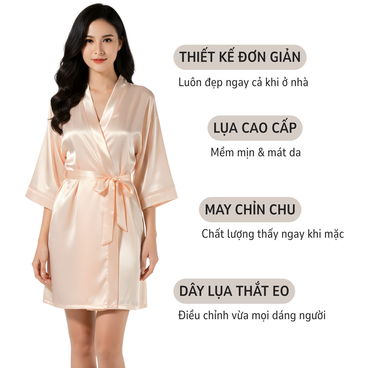 Ưu điểm: áo choàng ngủ rất nữ tính, thoải mái, quyến rũ, không kén người kén size
