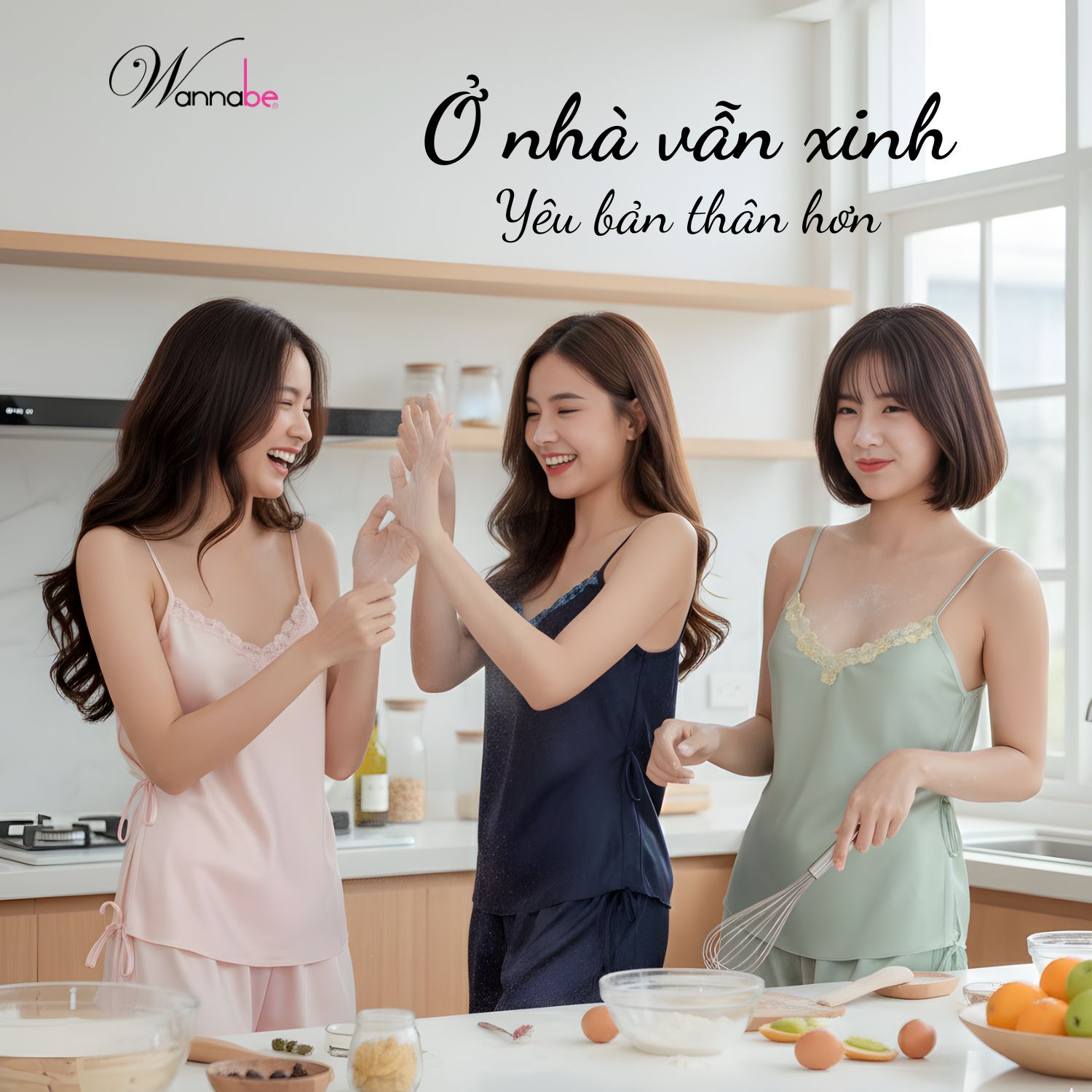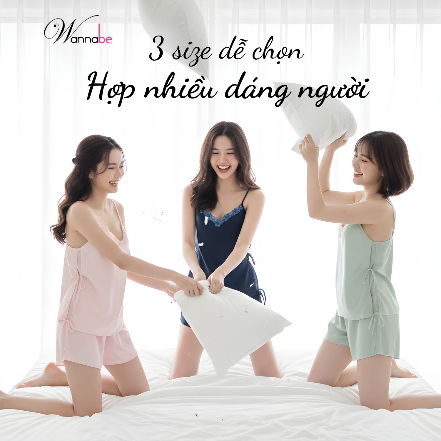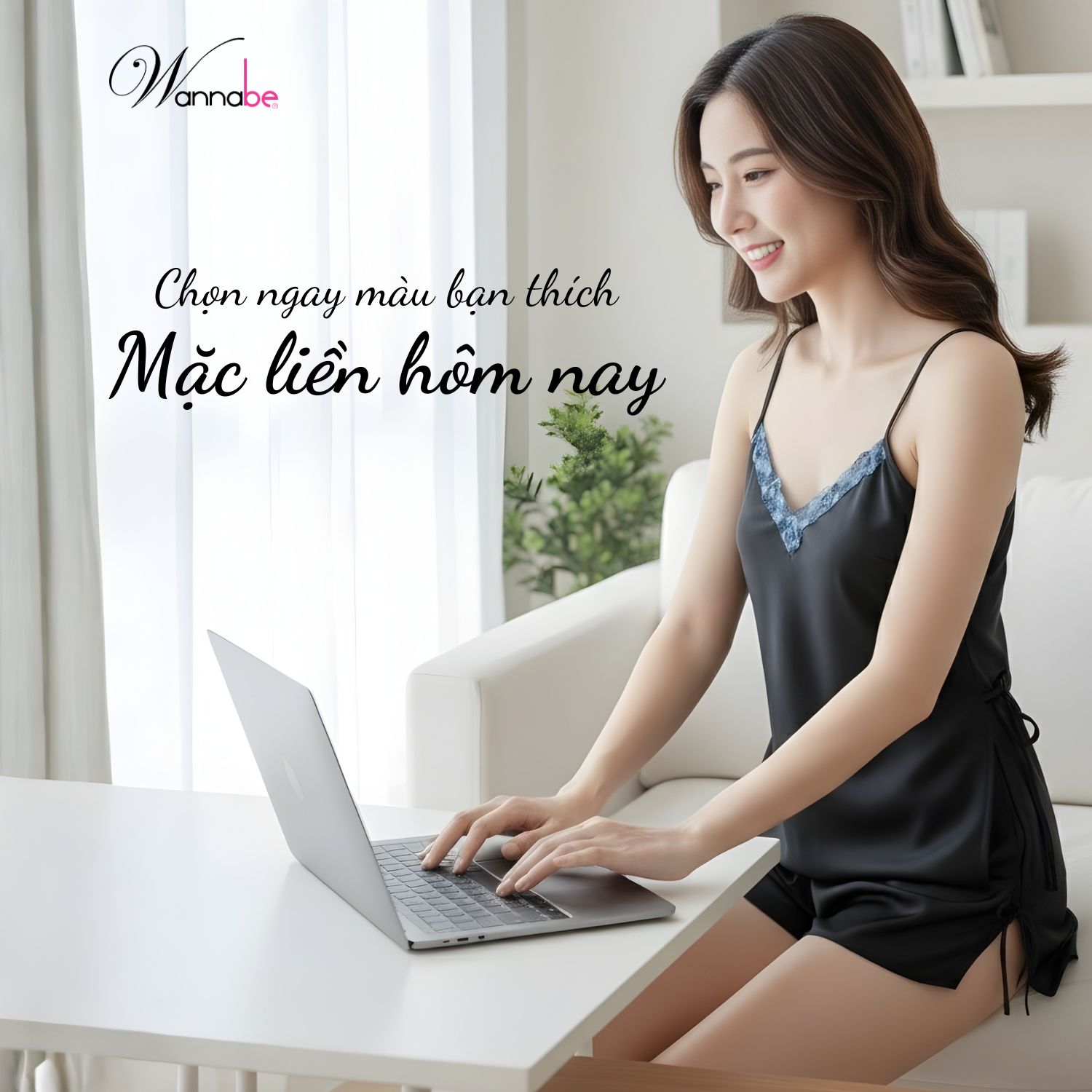 Đồ bộ Ngủ Nữ Lụa 2 Dây mịn phối ren hoa mát lạnh mùa hè WANNABE đồ bộ êm ái từng đường chạm BSL03