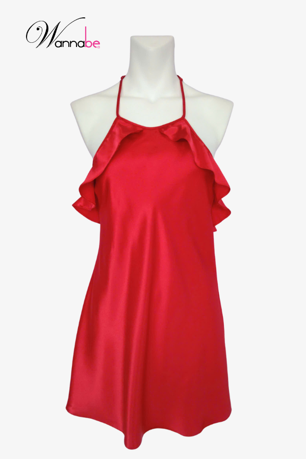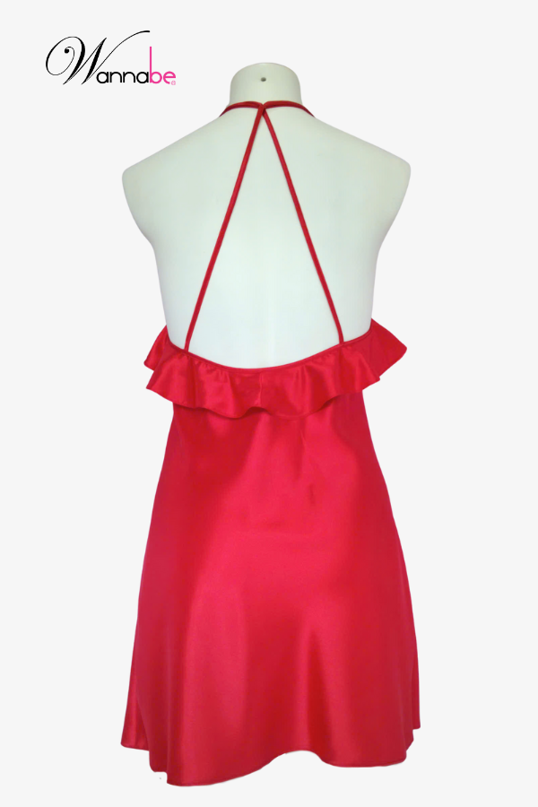 Đầm ngủ phi lụa cao cấp Wannabe DNS22 cổ yếm cut-out lưng nữ tính quyến rũ [wannabe.vn]