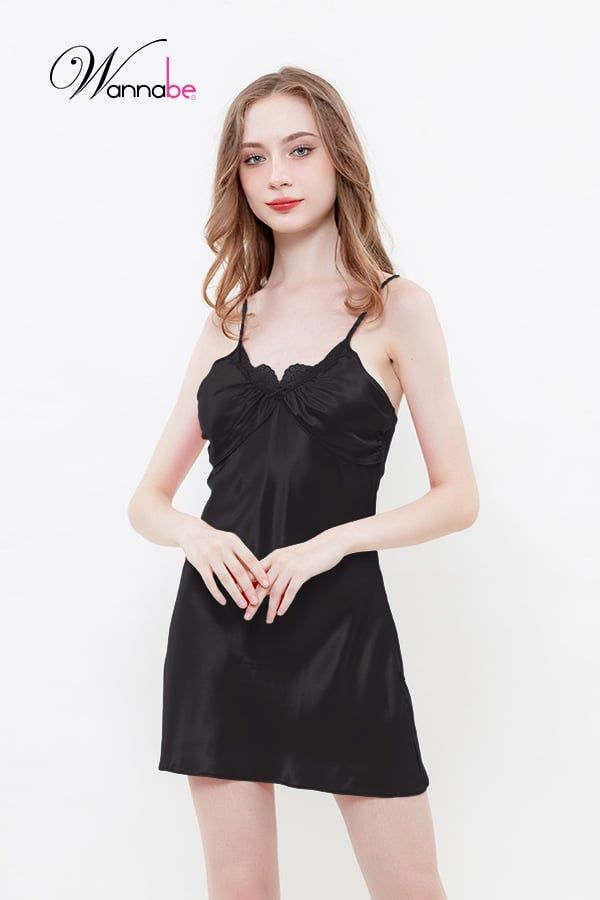 Đầm ngủ phi lụa cao cấp WANNABE DNS38 váy ngủ 2 dây cúp ngực phủ 2 lớp tạo độ phồng giúp ngực căng tròn