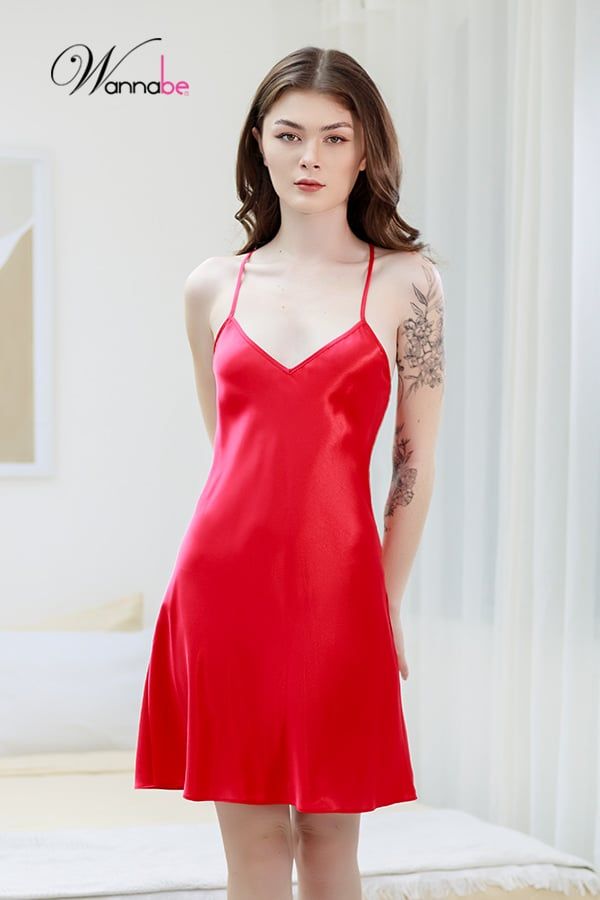 Đầm ngủ phi lụa cao cấp WANNABE DNS61 váy ngủ 2 dây lưng cut-out cột nơ tạo hình thoi bắt mắt khoe lưng trần gợi cảm