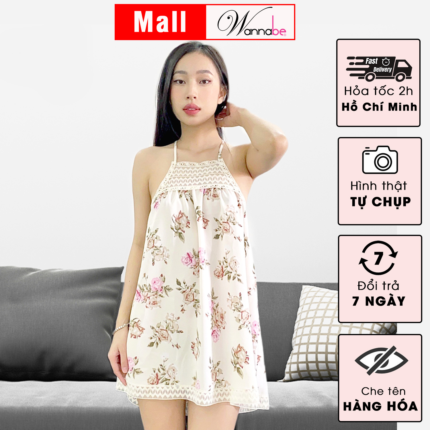 Đồ ngủ nữ Wannabe DNS72 thiết kế váy chữ A xinh xắn nữ tính không kén dáng cùng chất liệu lụa chi tiết hoa văn mềm mại thông thoáng mang đến cảm giác thoáng mát cho mùa hè oi bức này