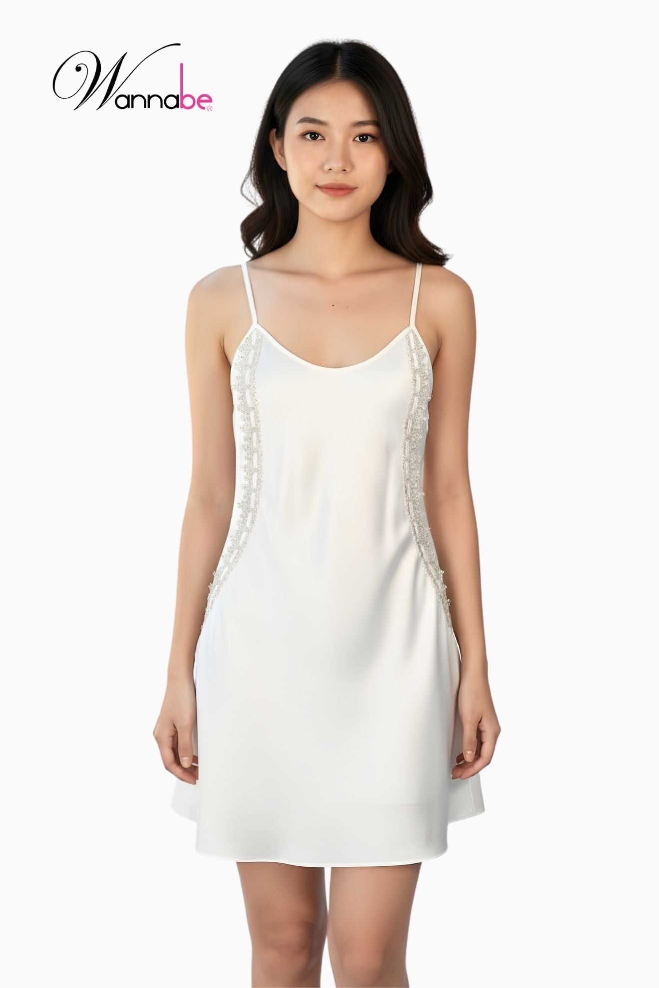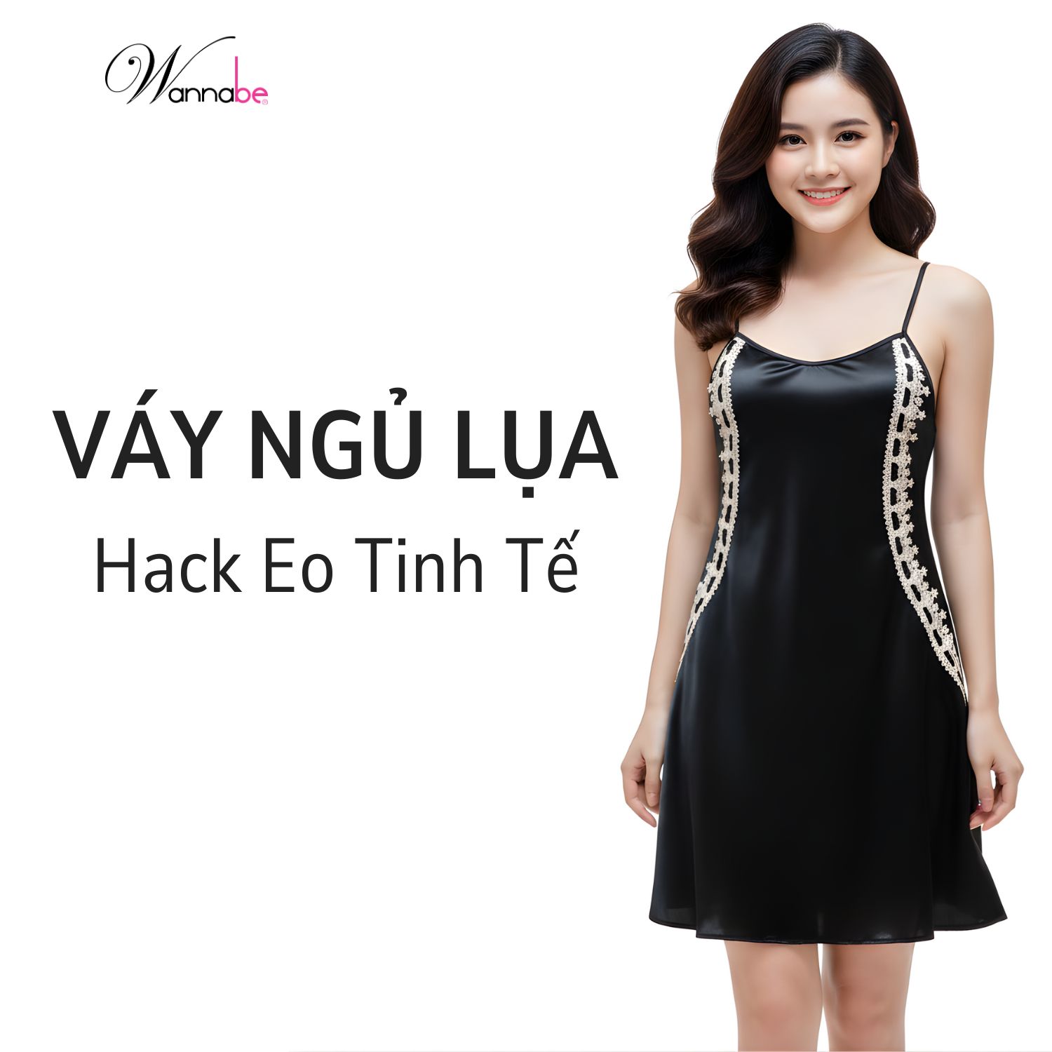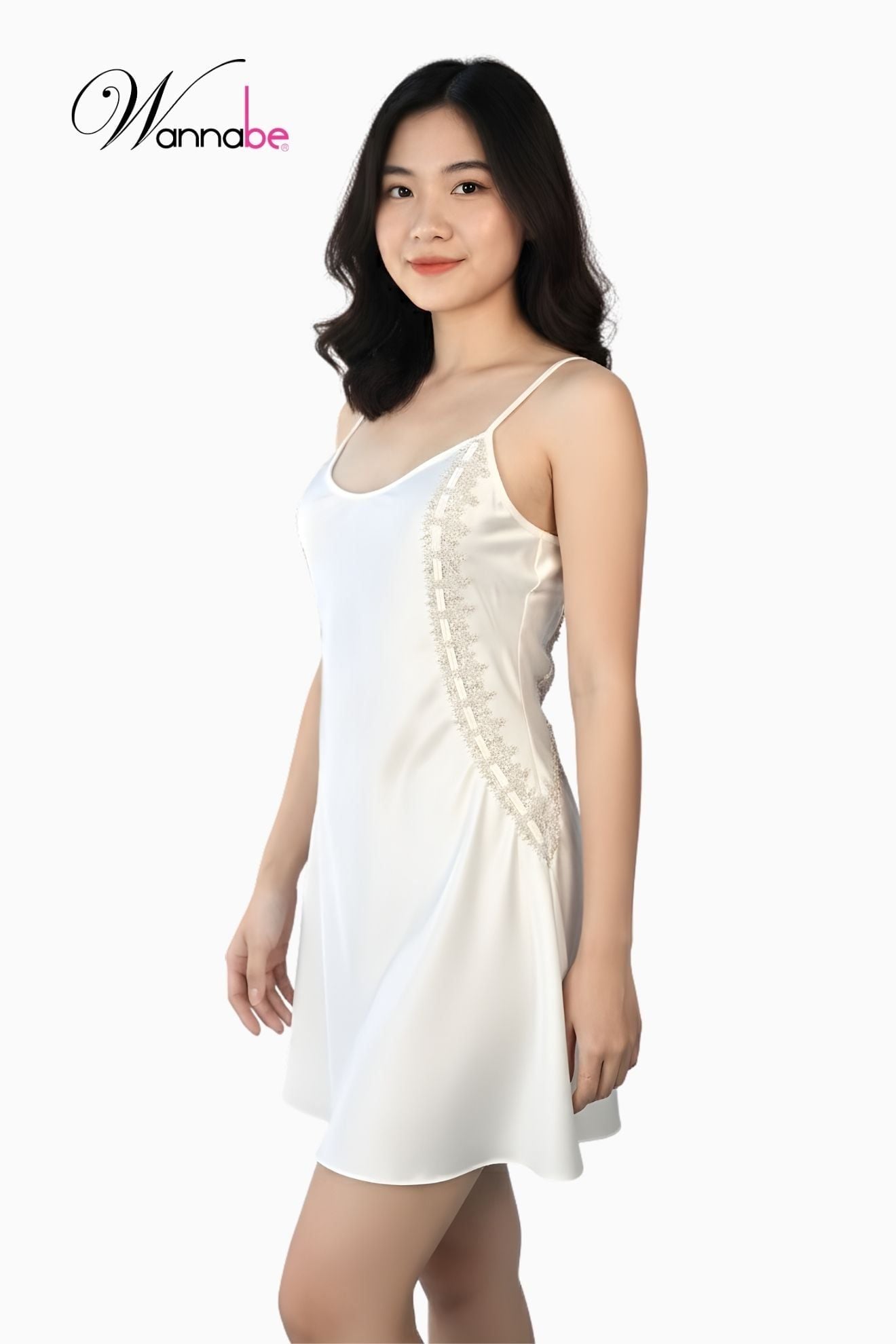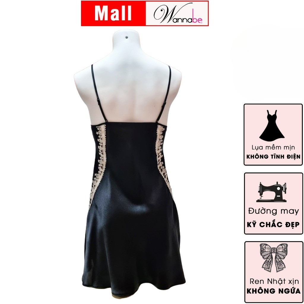 Váy ngủ lụa 2 dây cổ tròn WANNABE đầm ngủ phối ren nhẹ nhàng thanh lịch hack dáng đỉnh cao DNL14
