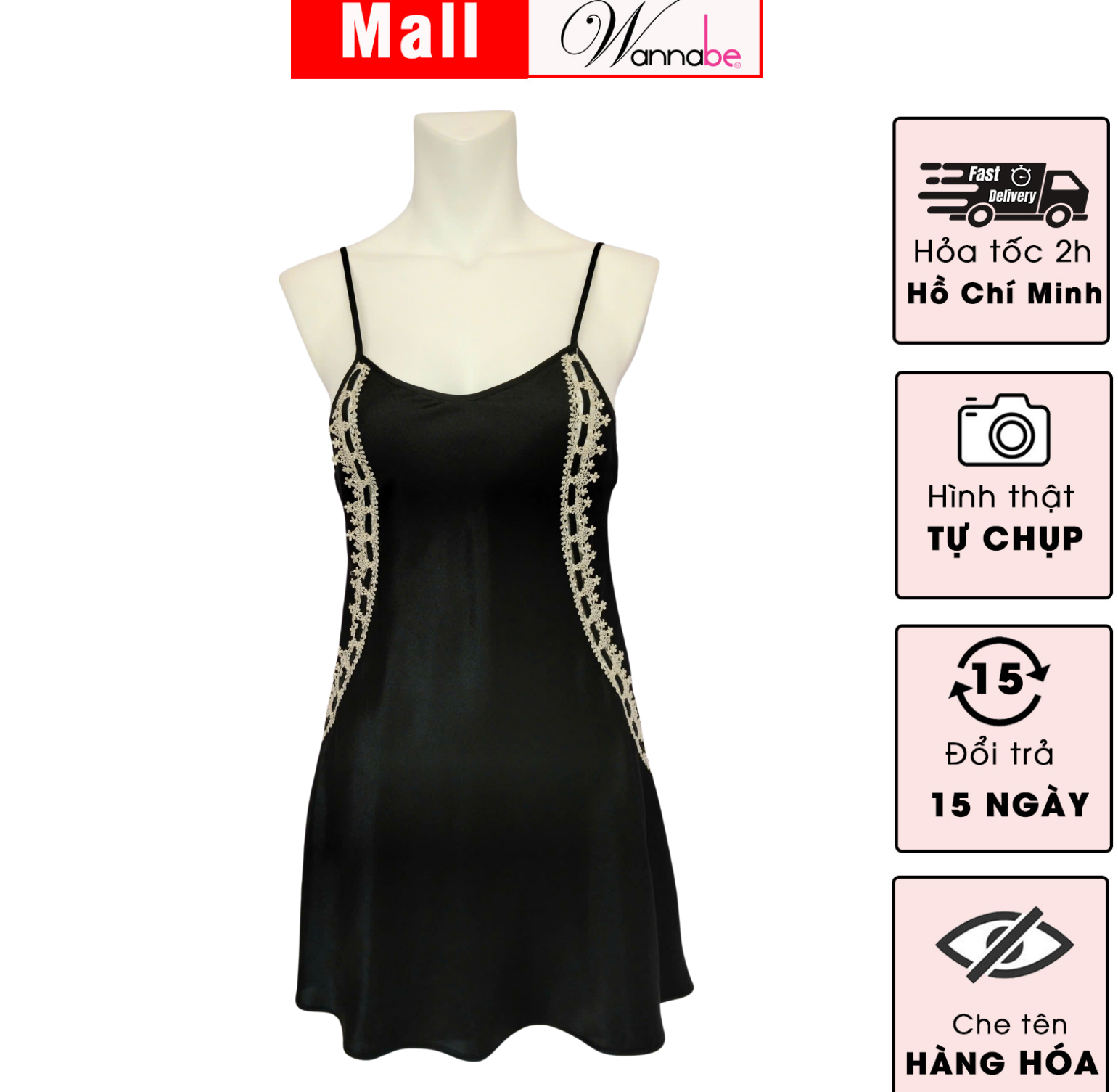 Đổi đầm ngủ miễn phí nếu sản phẩm bị lỗi từ WANNABE (quý khách vui lòng quay video mở hàng để WANNABE hỗ trợ nhanh hơn)