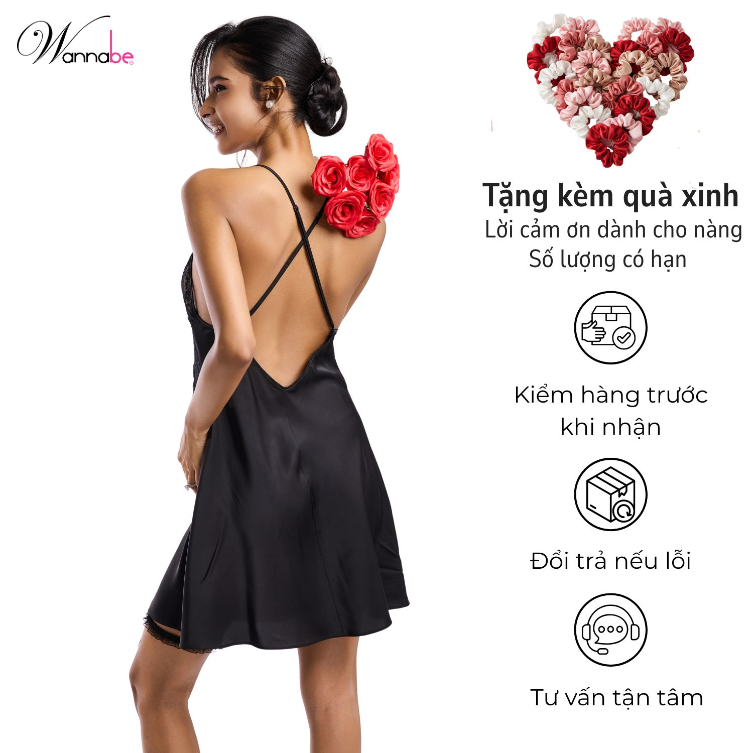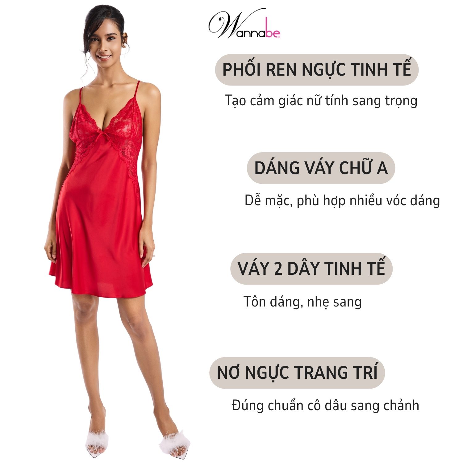 Chiếc váy ngủ lụa Latin phối ren cao cấp của Wannabe được thiết kế dành riêng cho những khoảnh khắc đặc biệt như đêm tân hôn, bridal night, honeymoon. Kiểu dáng nữ tính kết hợp chất liệu sang trọng giúp tôn lên vẻ gợi cảm tinh tế, phù hợp cho cô dâu và những ai yêu thích phong cách váy ngủ cao cấp.