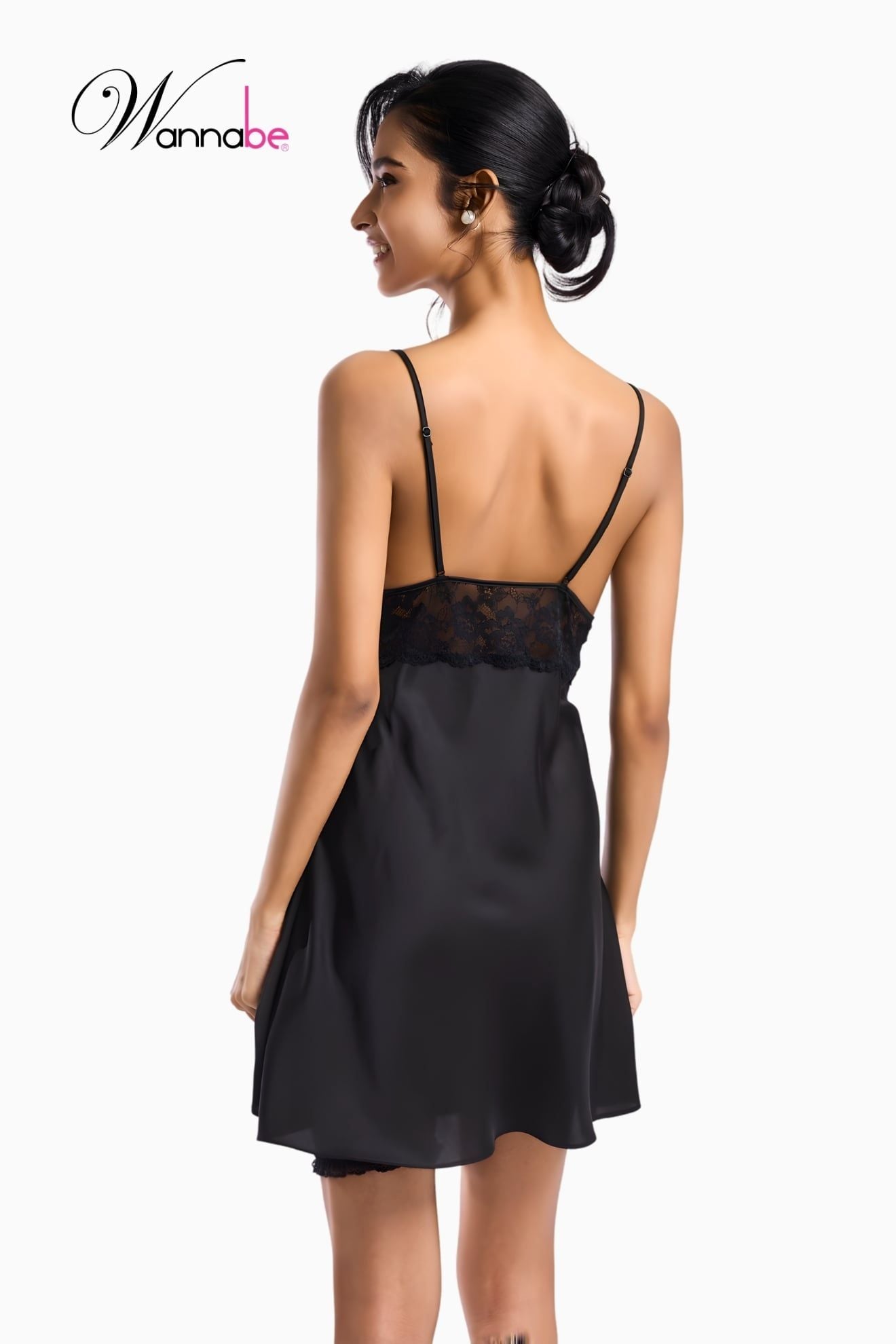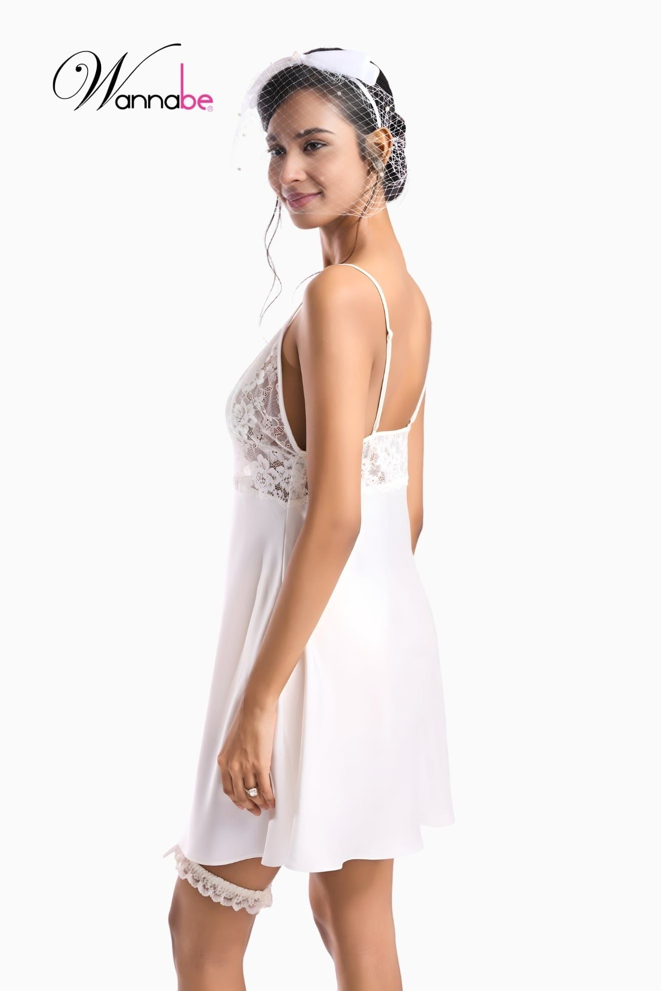 Váy ngủ lụa latin ren 2 dây cổ V sâu WANNABE bridal night dress đêm tân hôn cho cô dâu DNR01