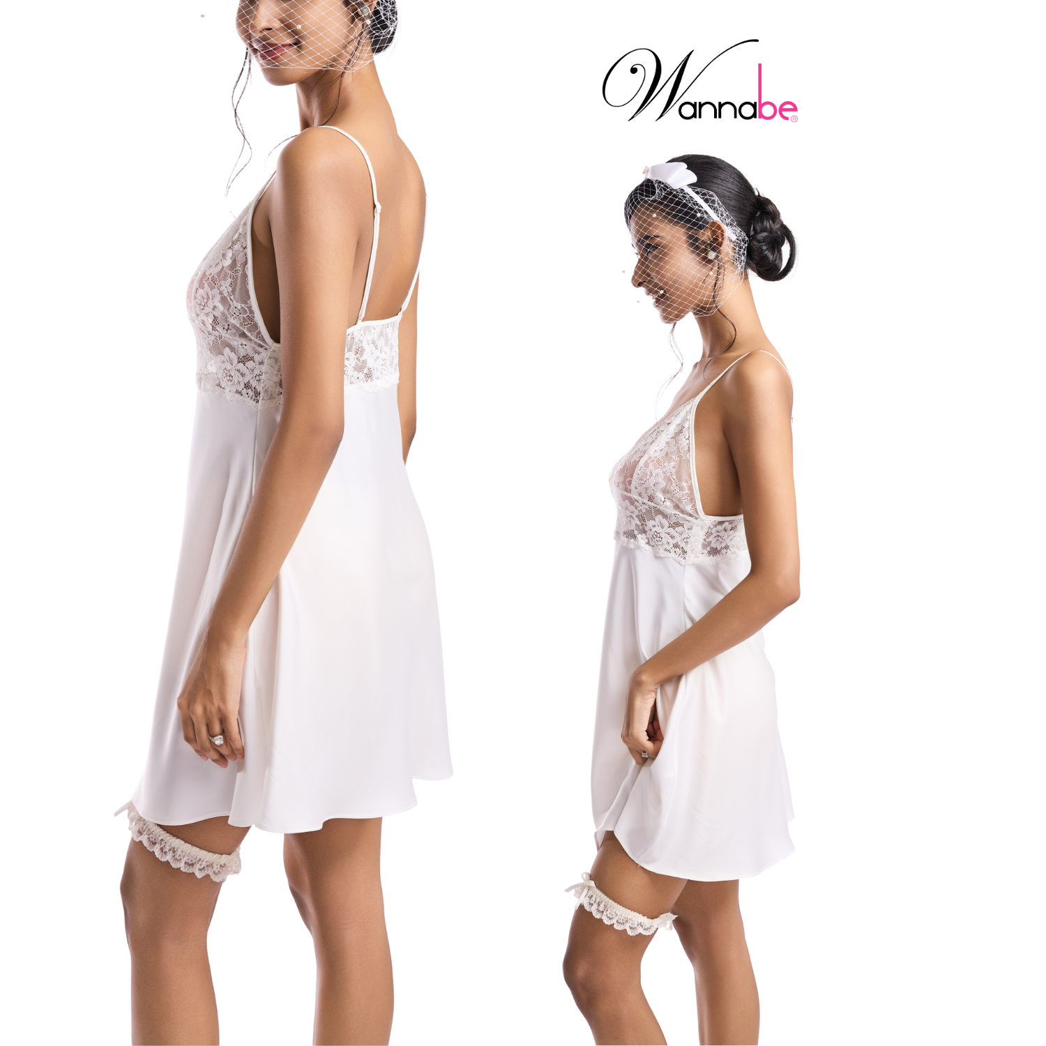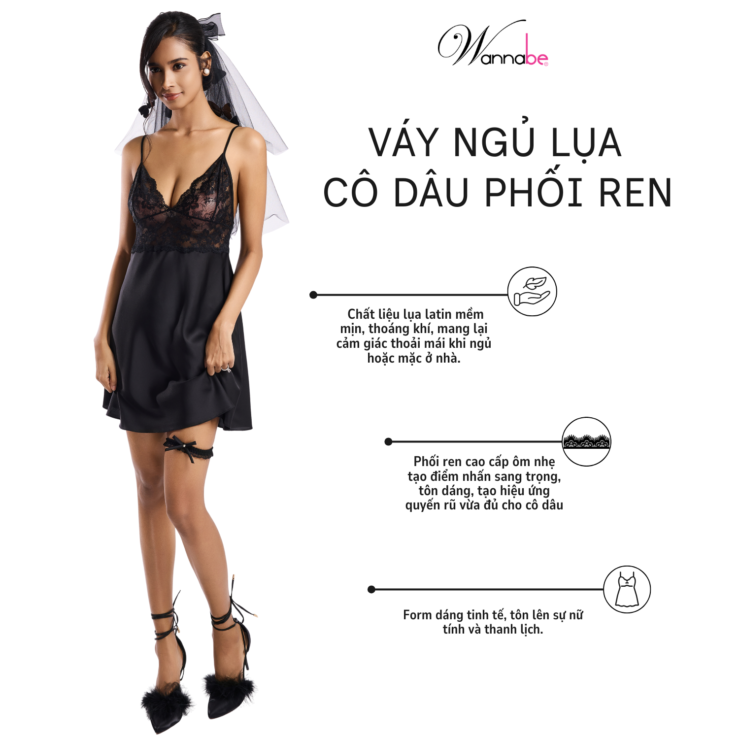 Chiếc váy ngủ lụa ren 2 dây của Wannabe được thiết kế dành riêng cho những khoảnh khắc đặc biệt như đêm tân hôn, bridal night, honeymoon hoặc làm váy ngủ cao cấp cho cô dâu. Kiểu dáng kinh điển kết hợp chất liệu sang trọng mang đến vẻ đẹp gợi cảm nhưng vẫn tinh tế, thanh lịch.
