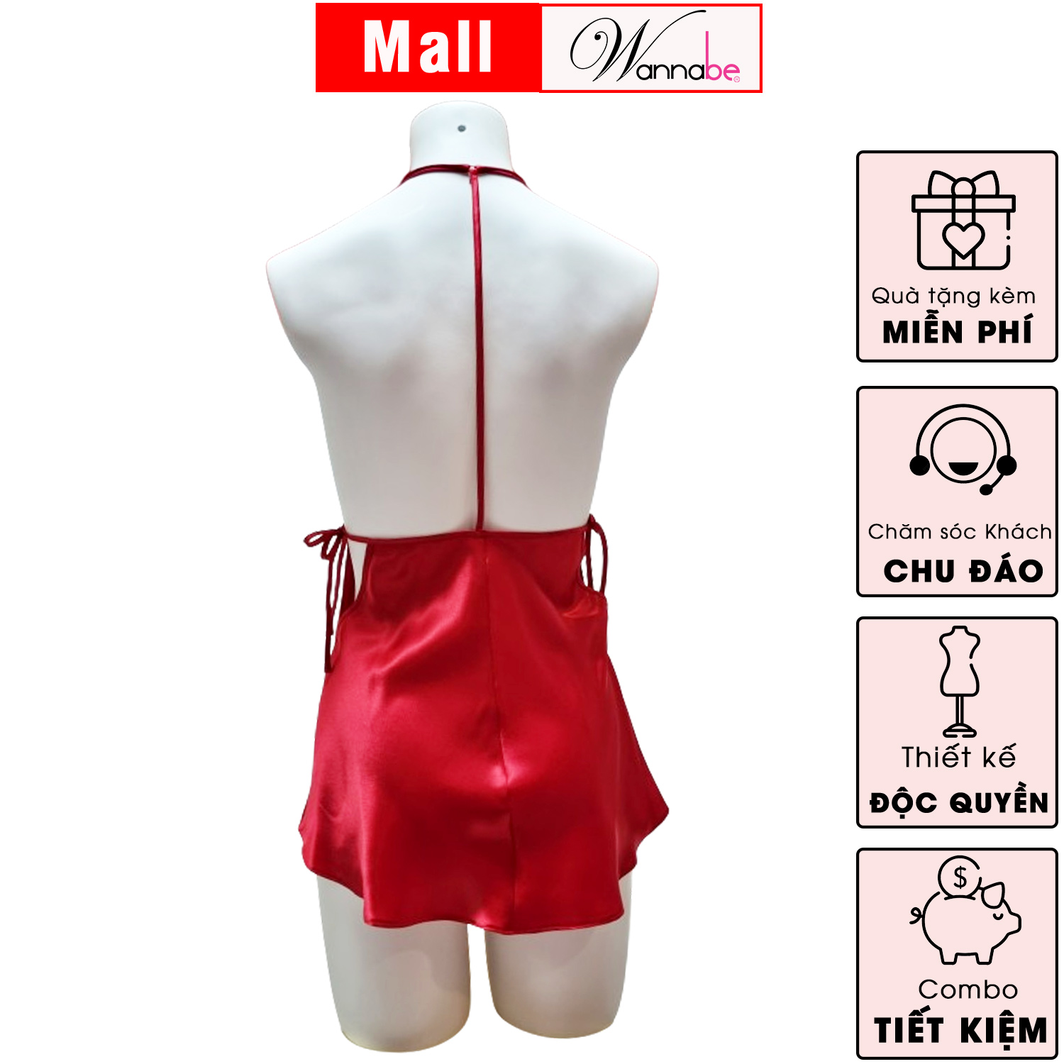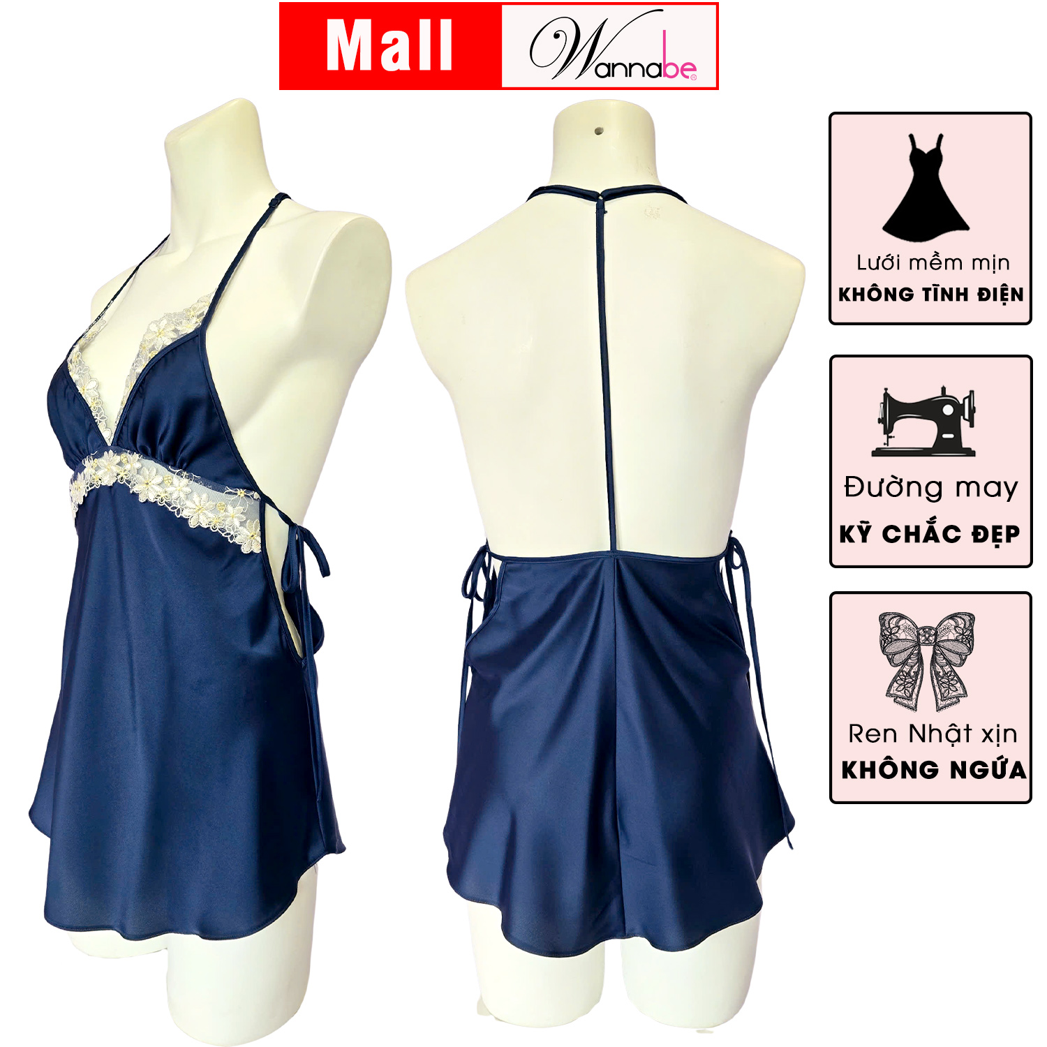Váy ngủ lụa latin WANNABE đầm ngủ midi dáng chữ A cutout lưng phối nơ quyến rũ từng chi tiết DNL11