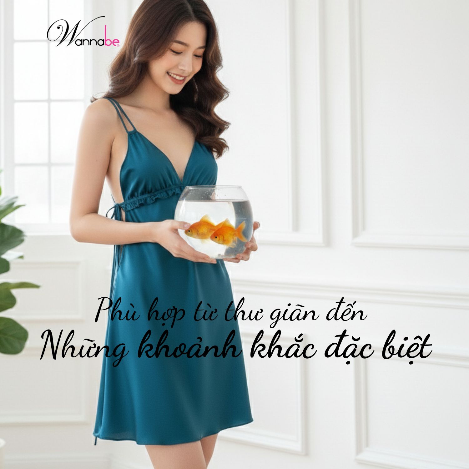 Đầm Ngủ Lụa Nữ Wannabe DNL04 – Lụa Mềm Mịn, Tôn Dáng Eo Thon
