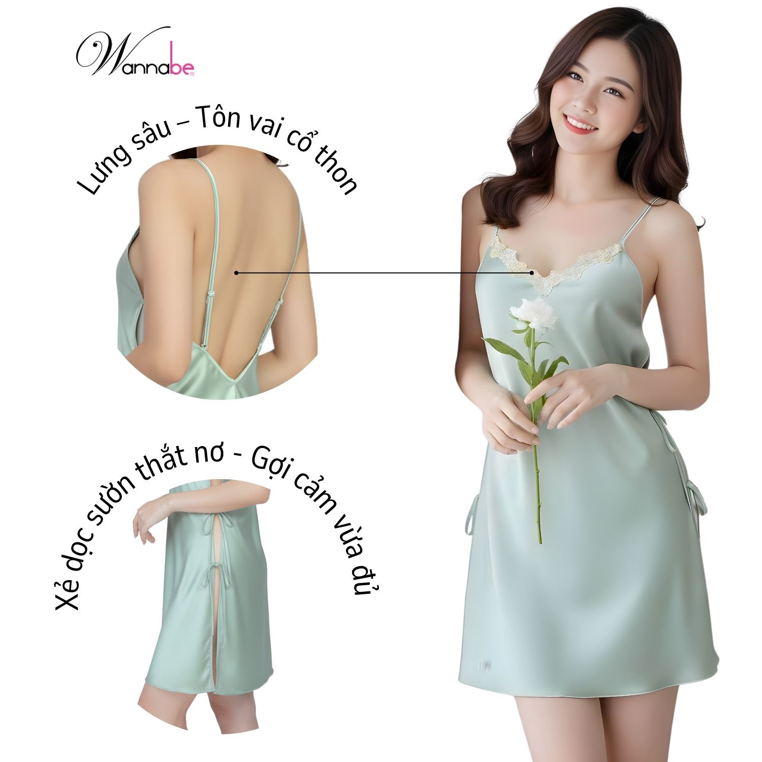 Váy ngủ lụa thiết kế sexy xẻ cao 2 hông thắt nơ WANNABE đầm ngủ nữ chuẩn khí chất nữ thần DNL03